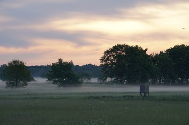 Leitprojekt "Rieselfelder Karolinenhöhe" im Morgennebel.