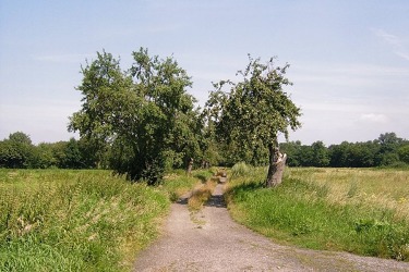 Fotos: Northei (LSG Rieselfelder Karolinenhöhe, Obstbäume. Wikimedia Commons); Rubus Fruticosus (Morgennebel im LSG-39 "Rieselfelder Karolinenhöhe" (Berlin), Creative Commons Attribution-Share Alike 4.0 International)